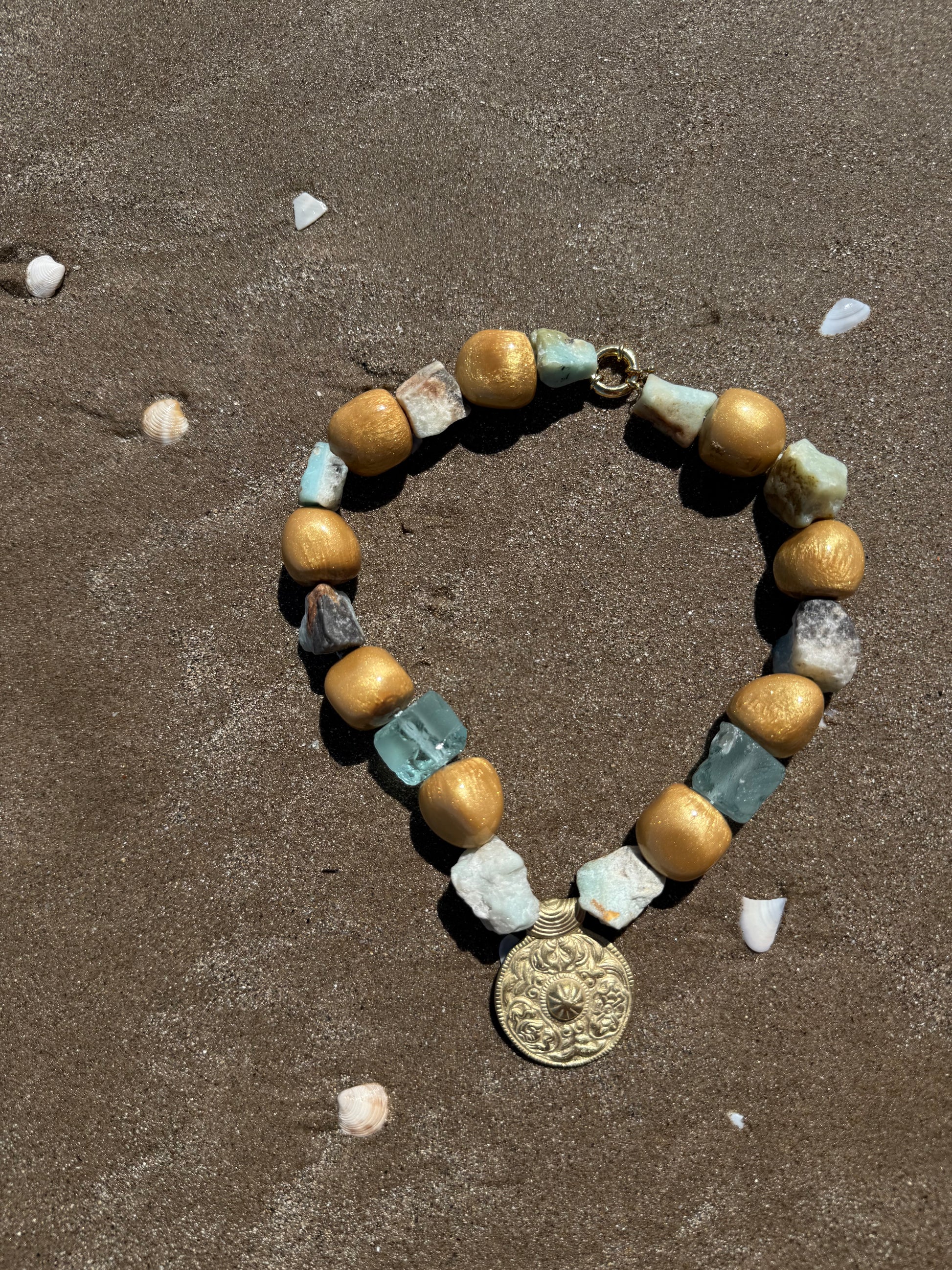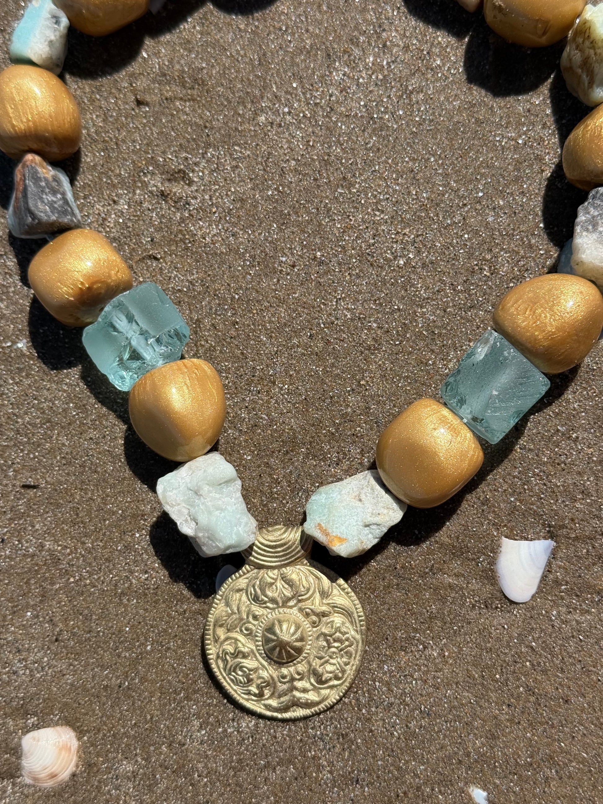 Collar hecho a mano con ágata en bruto y resina.