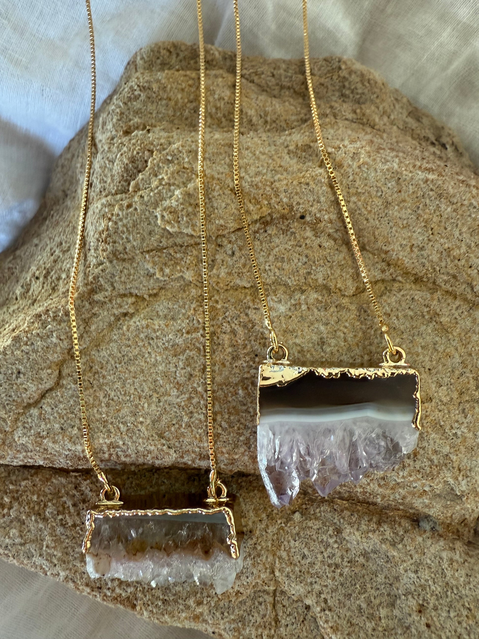 Collar de cuarzo amatista con baño de oro 18k